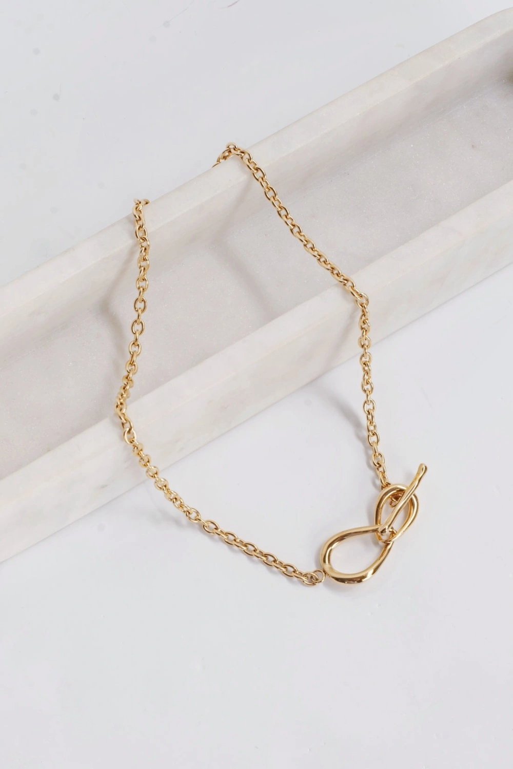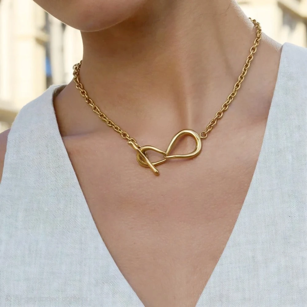 Ένα εντυπωσιακό χρυσό κολιέ αλυσίδα με γεωμετρικό κρεμαστό. Το κρεμαστό σε σχέδιο απείρου και η ιδιαίτερη αλυσίδα κάνουν το Infinite necklace ένα ξεχωριστό κομμάτι στη συλλογή σου.