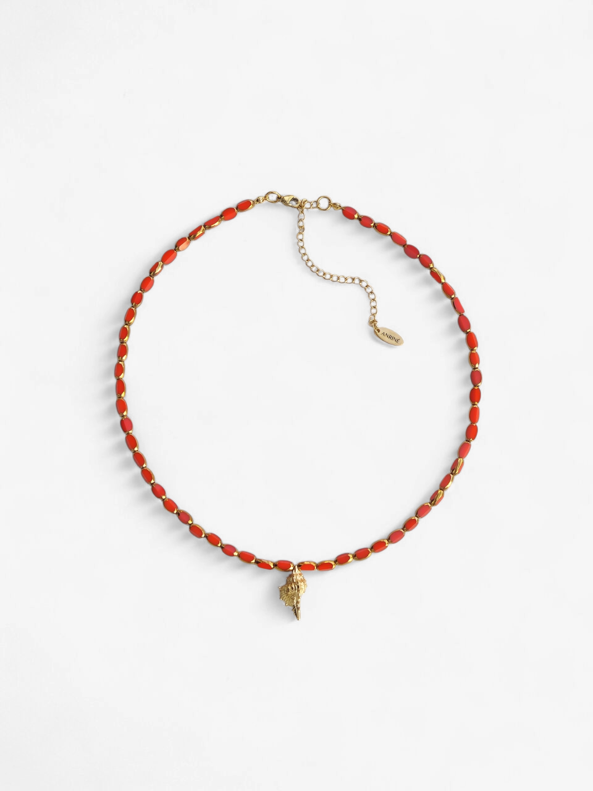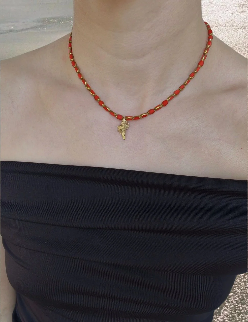 Χειροποίητο κόκκινο κολιέ με Κοχύλι. Ένας μοναδικά καλοκαιρινός συνδυασμός κόκκινων χειροποίητων χαντρών με χρυσές λεπτομέριες και κρεμαστό κοχύλι, που θα λατρέψεις να φοράς όλο το καλοκαίρι.