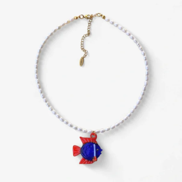 Χειροποίητο κολιέ με Φυσικές πέρλες και ψαράκι Murano γυαλί. Μία μοναδικά ξεχωριστή επιλογή για το καλοκαίρι που θα λατρέψεις.