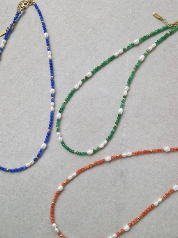 Υλικό: Ημιπολύτιμες φυσικές πέτρες αβεντουρίνης & αιματίτη, φυσικές πέρλες γλυκού νερού, ανοξείδωτο ατσάλι